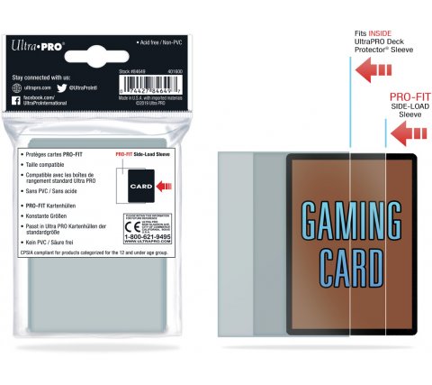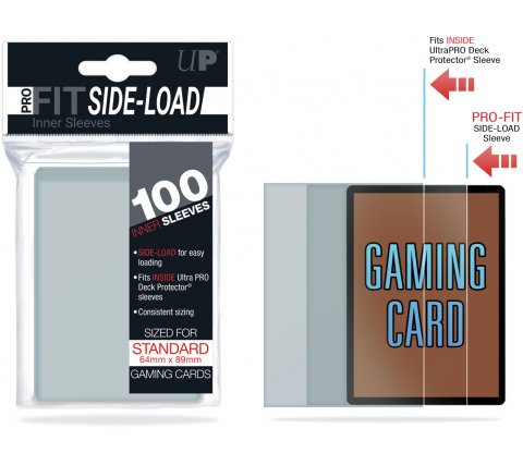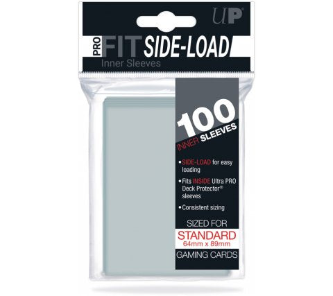 De Ultra PRO PRO-Fit Side-Loading Sleeves zijn hoogwaardige binnenhoezen voor verzamelkaarten op standaardformaat, zoals Magic: The Gathering, Pokémon en Disney Lorcana. Dankzij het zijwaarts inschuiven van de kaarten wordt het risico op luchtbellen en beschadiging geminimaliseerd—ideaal voor double-sleeving!